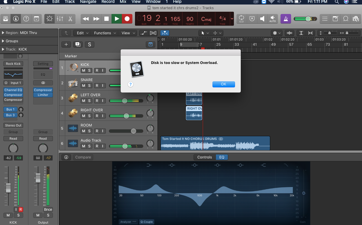 Hello drum community. Hope this finds you all well. So I've been wrestling with an issue for over a year now. I've got a 2012 macbook pro running Logic pro x, (happens with Garage Band too) I have tried almost ever thing under the sun, but still get the "Disc too slow or system overload" error message when tracking live drums. But Here's the kicker, it's only if i play loud... I can track all day with out issue, but as soon as i play a chorus type section (crash ride on the right side of kit), this error message pops up.